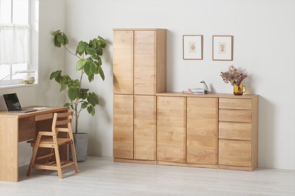 アルダー無垢材と扉の丸みが他にない質感を演出します