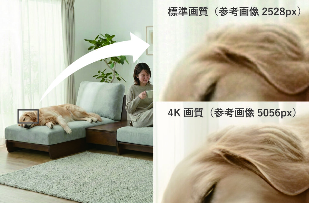 標準画質(約2048px)を4K 高画質(約3840px)に変更します。